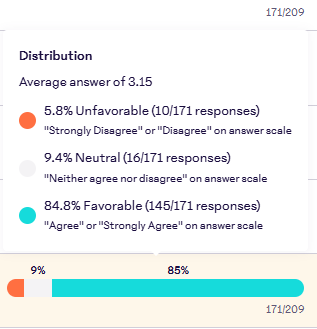 - Distribution: A bar showing the spread of responses categorized as Unfavorable, Neutral, or Favorable.
