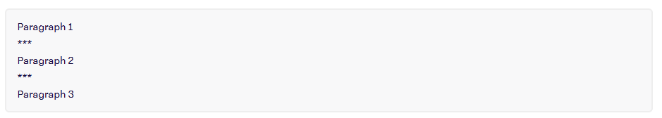 To create a horizontal rule, use three or more asterisks (***) on a line by themselves.