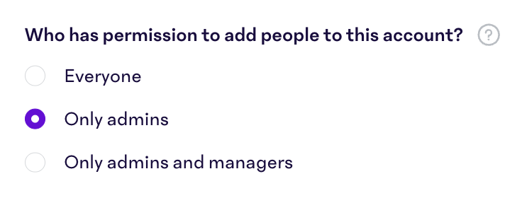 - Select your desired option under the question 'Who has permission to add people to this account?'.