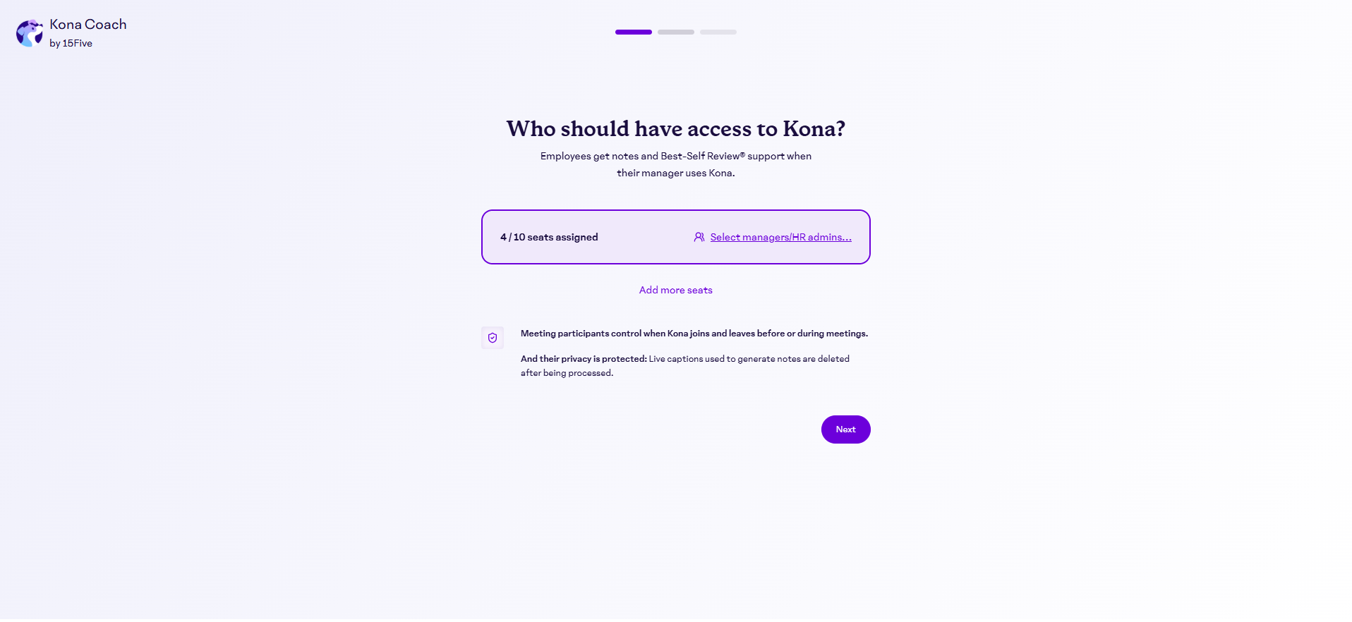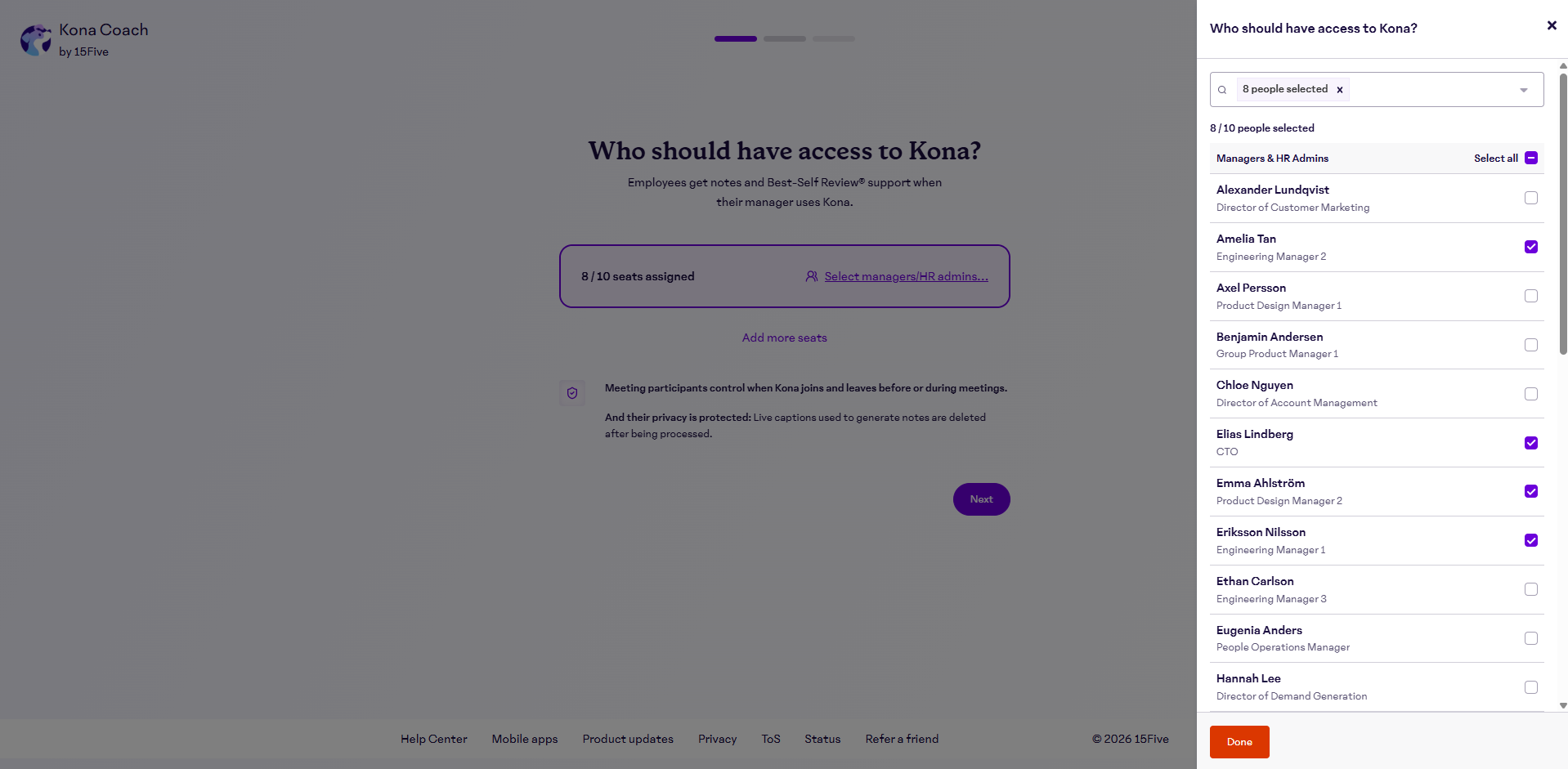- Select which managers should have access to Kona from the options below and click "Next"