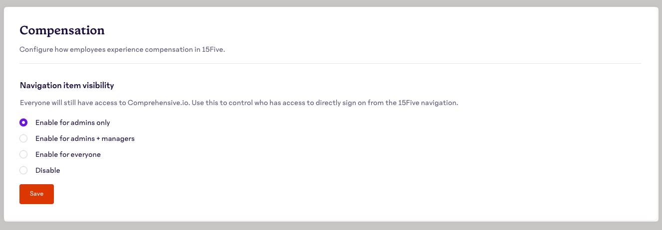 - Disable - The Compensation navigation item is hidden from all users, including admins.
